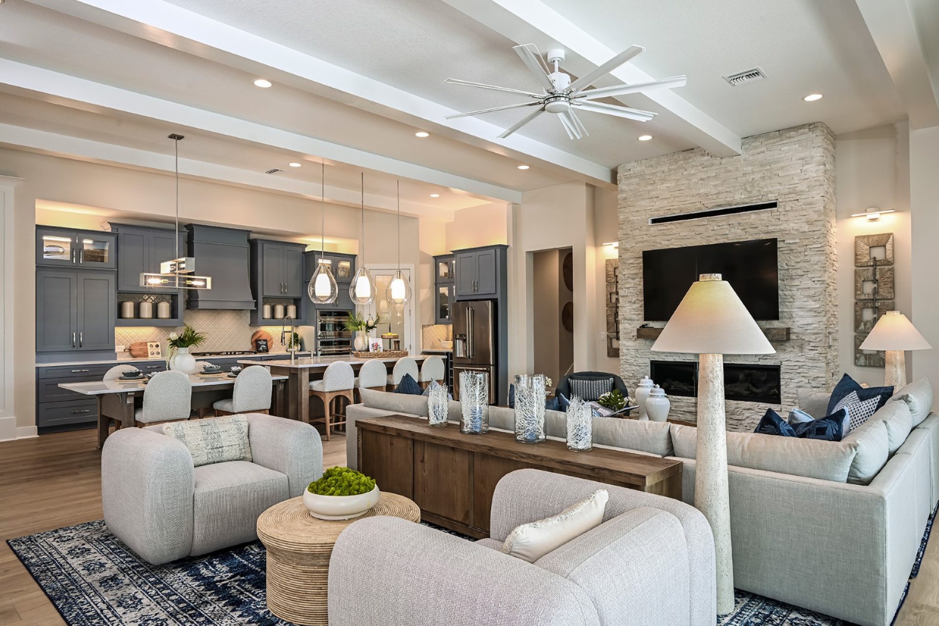 This Key West II Model Home is Available Now! This home features Sedona Slate cabinets, Monument White Daltile 3CM Quartz countertops, Aristocrat HD Plus Essential White LVP flooring, and more. The Key West II floorplan offers stylish, open plan living, abundant natural light and a covered lanai to extend the living areas outside. The gracious foyer and arched hallways give access to the spacious first and second bedrooms, and a den/office space in the front of the home. Further, the foyer opens to the heart of the home with its gourmet kitchen and extended island overlooking the semi-formal dining and grand room. Secluded off the grand room is the luxurious owner’s retreat with oversized double walk-in closets. The second story includes a spacious bonus room and wet bar for entertaining, in addition to two secondary bedrooms and a bathroom.